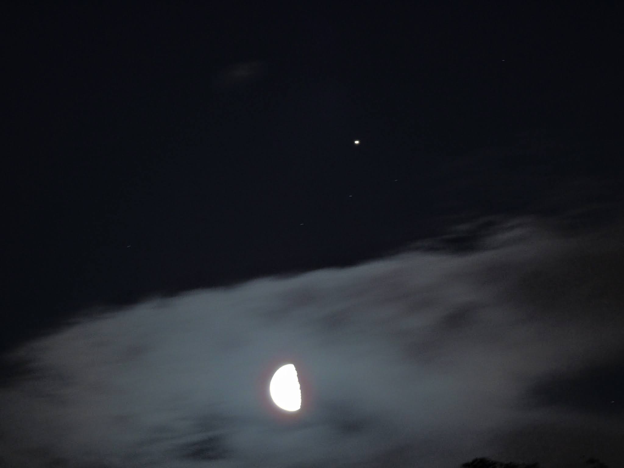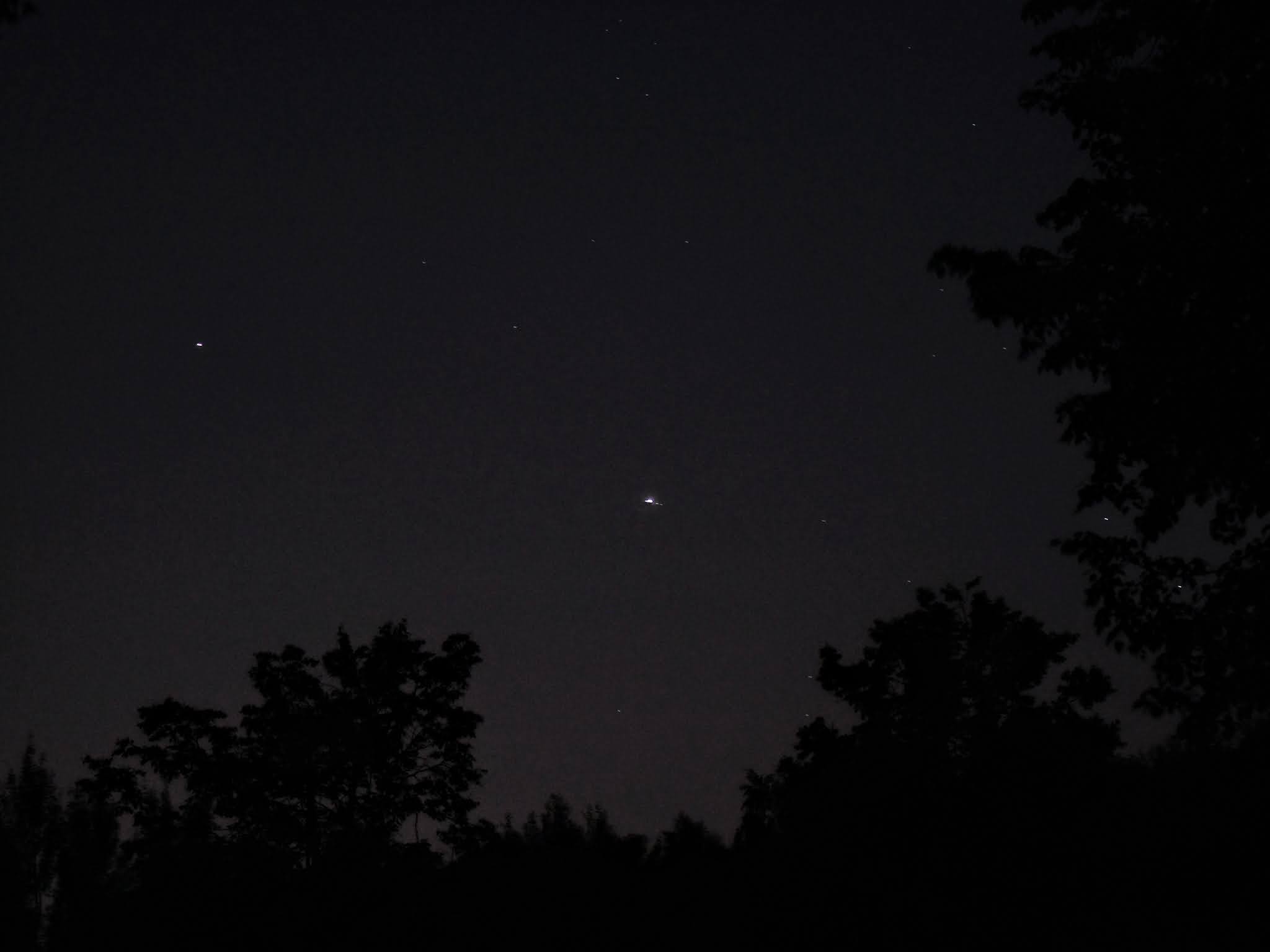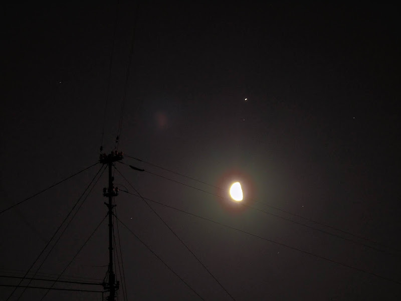 Из окна мне виден только юг, поэтому я не представлял, что происходит с другой стороны. Но мою мотивацию подталкивали взошедшие около полуночи Марс и Луна. У них в эту ночь было свидание - светила сблизились до довольно близкой дистанции - всего 2 градуса. Согласитесь, 2 градуса - это уже не френд-зона.