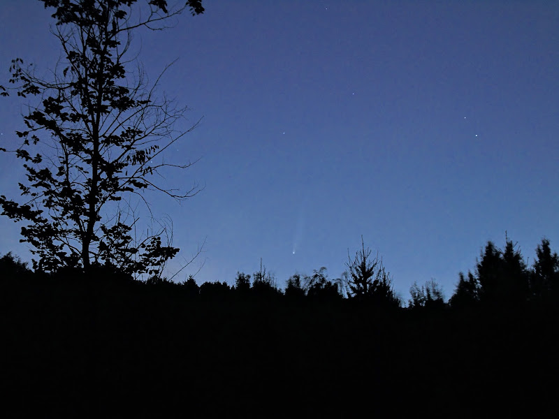 Нашлось лишь пара мест, откуда Комета была видна лишь на кометное перышко выше верхушек деревьев. И опять были проблемы с фокусировкой. Несколько неплохих по сюжету кадров отправились корзину - нефокус. Но что-то всё таки вышло. А в итоге Комете досталось совсем немного кадров. Гораздо больше Луне с Марсом, и Юпитеру с Сатурном. А еще - Большой Медведице.